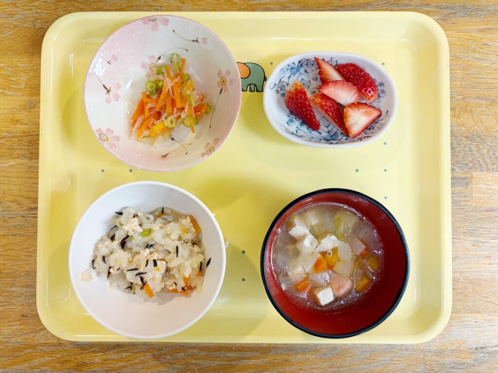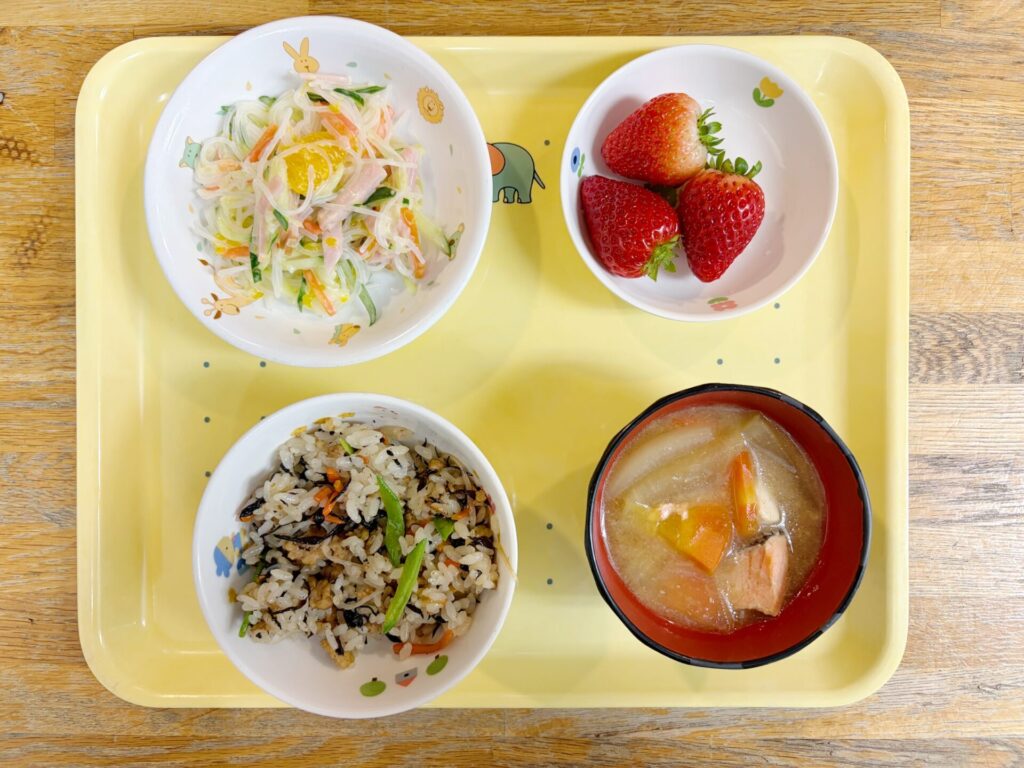ひじきごはん・三平汁・シルバーサラダ・いちご