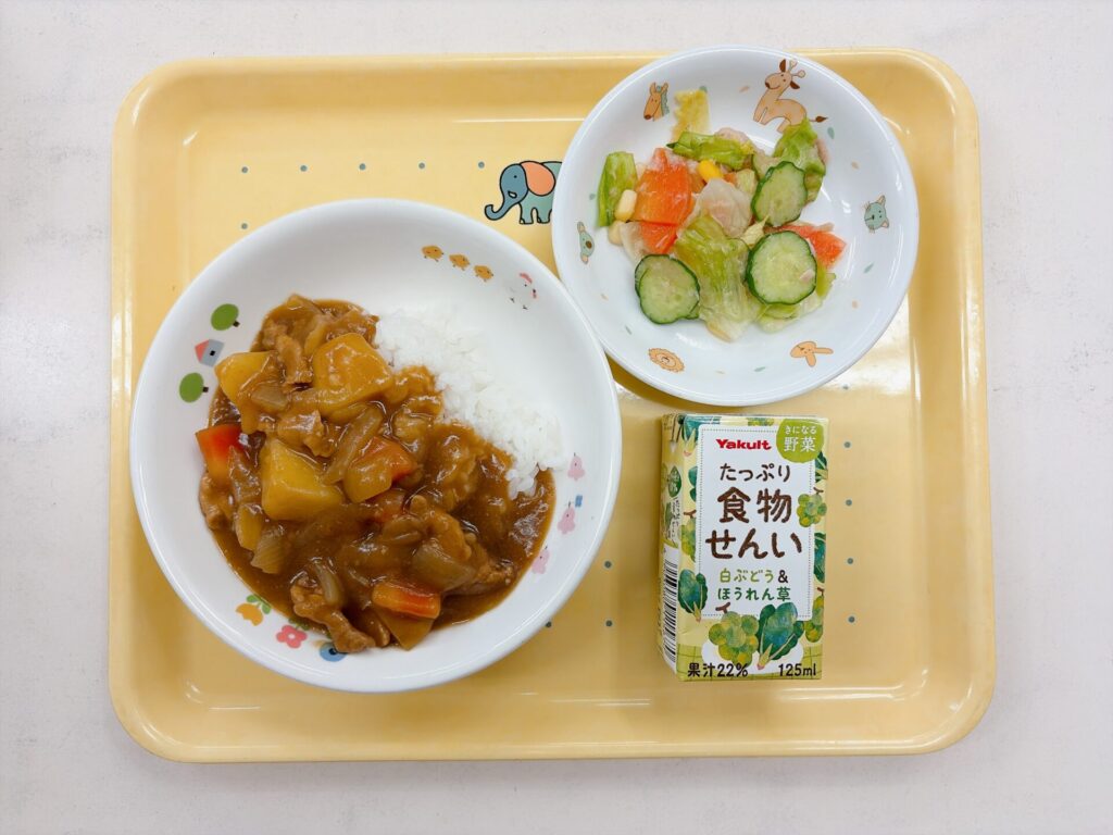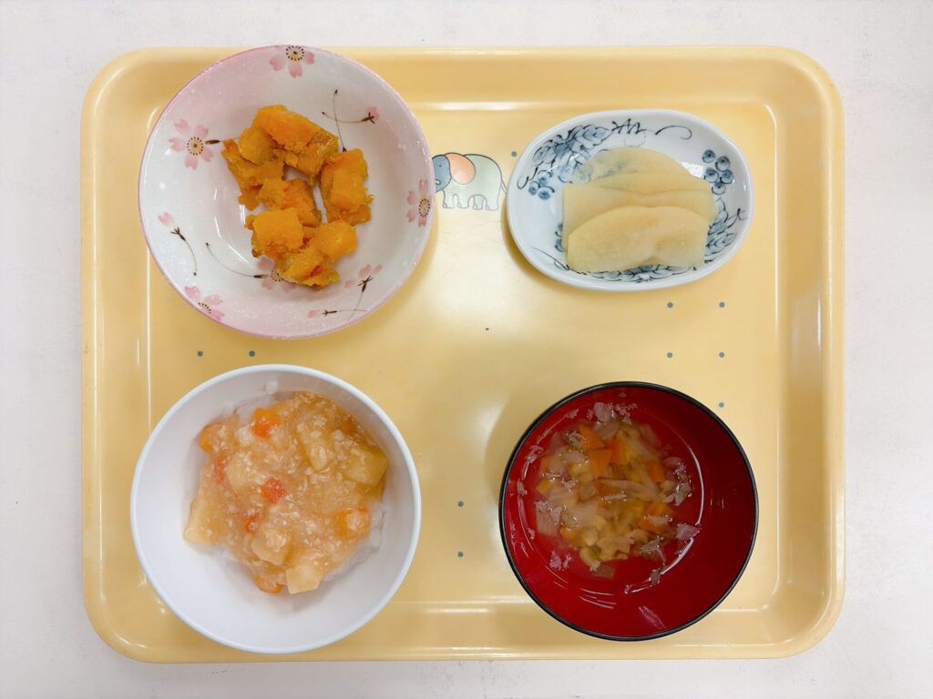 ハヤシライス・レタススープ・南瓜きな粉・りんご